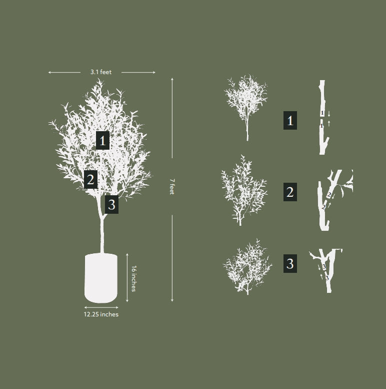 This Artificial Olive Tree stands tall at 7 feet, meticulously designed to capture the essence of real olive trees.